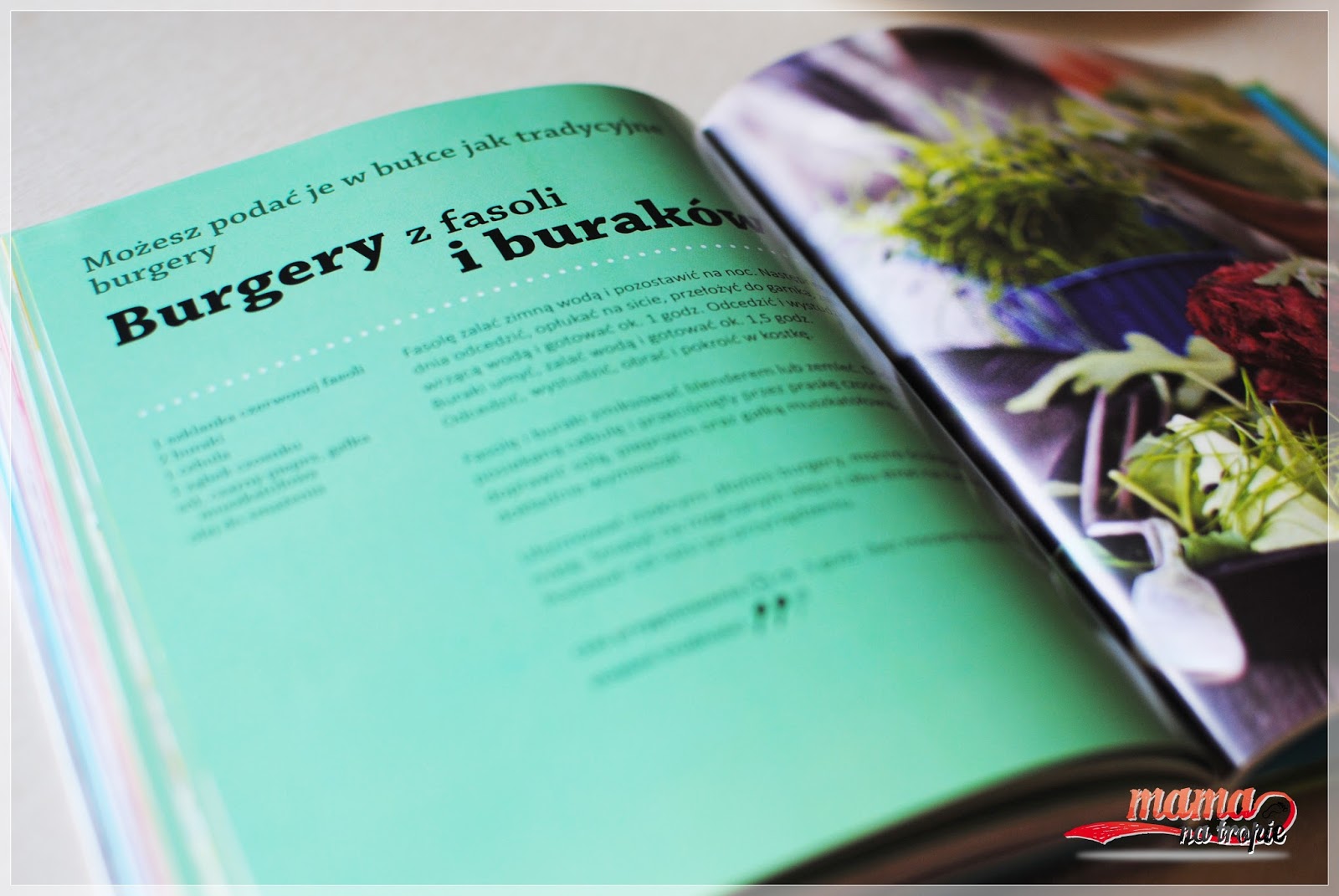Dziś zatem wypróbowaliśmy jeden z przepisów Kuchni Wegańskiej. Kuchnia Wegańska jest to kuchnia oparta na produktach zbożowych, warzywach i owocach, która całkowicie rezygnuje z produktów mięsnych oraz pochodzenia zwierzęcego jak masło, jogurt, mleko czy śmietana. Jako, że jestem jaroszem od dawna ciekawiła mnie ta kuchnia. Wygląd bardzo obiecująco, szczególnie że chciała zwiększyć udział warzyw i owoców w mojej diecie oraz kasz. Otrzymana książka jest zamknięta w twardej okładce, w niepozornym formacie. W środku oczywiście znajdziemy kolorowe, smakowite ilustracje i wiele ciekawych przepisów. Jako pierwszy wypróbowaliśmy przepis na Burgery z fasoli i buraków.