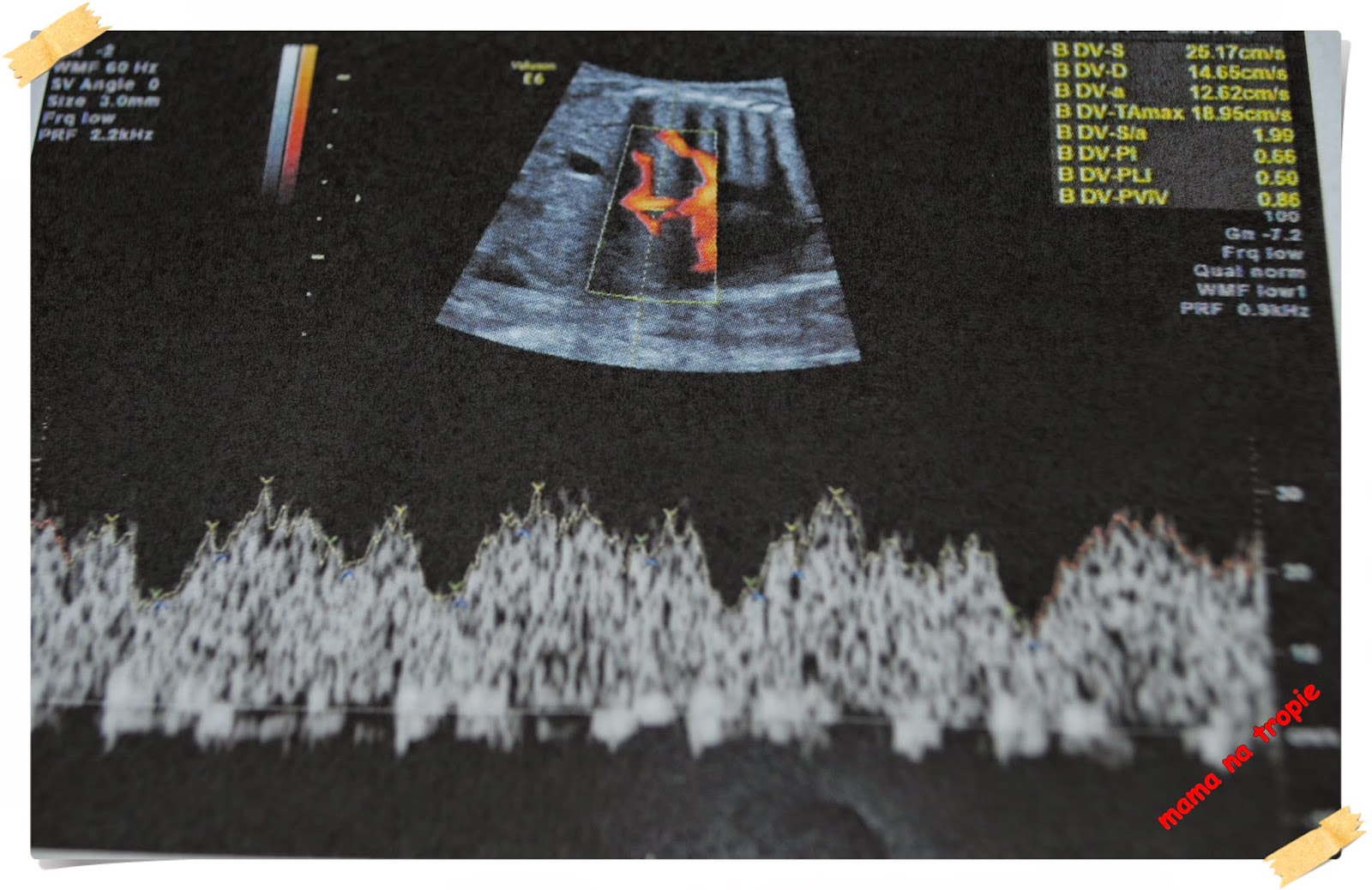24-26 tydzień. Czas leci… maluchy rosną tak jakby były pojedyncze a nie we dwójkę, więc i matka ma coraz większe, odczuwalne fizycznie problemy. Na usg niestety coraz mniej widać, gniota się tam maluszki, chowają przytulając do siebie nawzajem oraz do ścian macicy czy też wskakując mi pod żebra. Tym razem chciałam Wam pokazać przepływy w pępowinie oraz w sercu jednego z bliźniaków – są jak najbardziej prawidłowe. A TTS-u ani widu ani słychu, choć lekarz ostrożnie zaznacza, że zdarzył mu się nawet taki który się zaczął w 30 tygodniu. Wyniki troszkę spadły jeśli chodzi o żelazo, więc dostałam do spożycia Sorbifer. Nie najgorszy w smaku i nie najtrudniejszy do spożycia, patrząc na to, że nie umiem totalnie łykać tabletek. Nie podrażnia mi tez żołądka więc jest nie najgorzej.